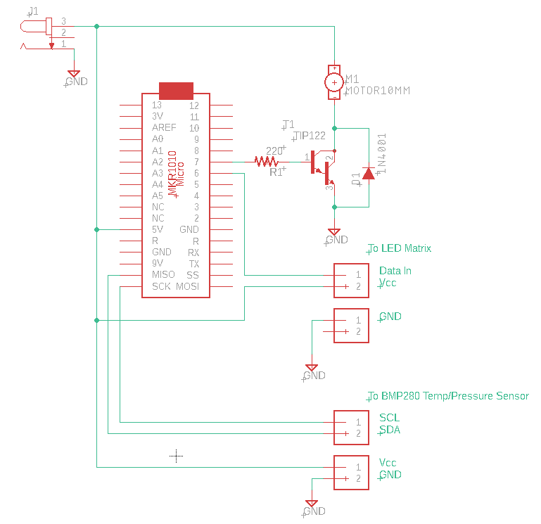 temperature and pressure data and manipulates the LED matrix and blower fan RPMs in response to the environmental