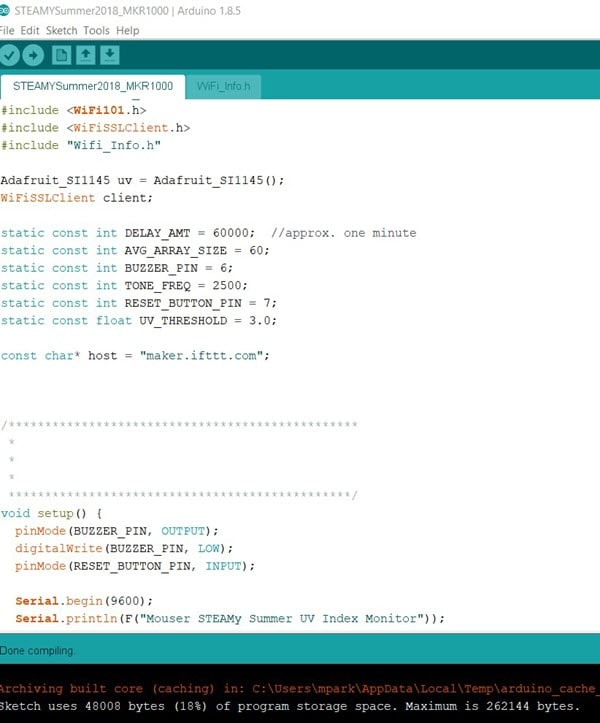 The dog days of summer are almost over for those of us here in the northern hemisphere. But while this fun, carefree season was here, the sun shined most days and with it came potentially harmful ultraviolet (UV) radiation. In this final article of the series, we will construct our circuit and program the Arduino MKR1000 to perform the functions we established previously. Also, be sure to read the second blog in this series to better understand the science behind safe fun in the sun.