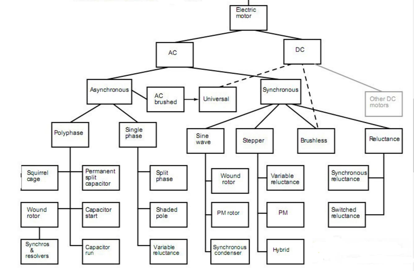 Any discussion of motor selection begins with the basic division between AC and DC motors, and then expands into many major and minor branches of the tree. Looking at the above tree brings up four questions: