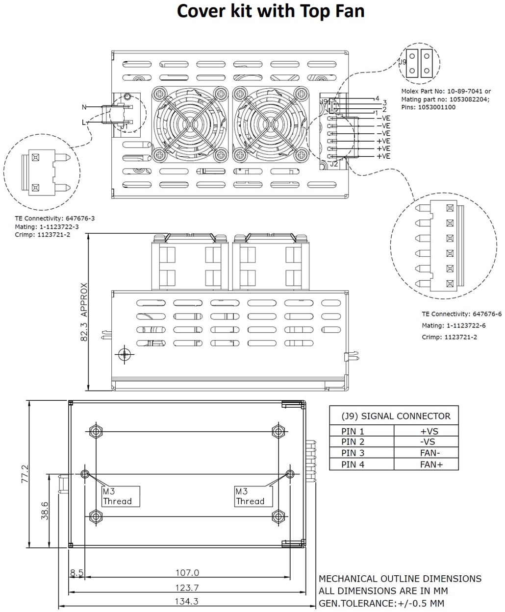 EOS Power FLS400 ITE Grade AC-DC Power Supplies offer a 400W maximum output power, efficiency up to 90%, and 12V to 58V voltage range. These power supplies are designed to work with forced air cooling and feature thermal shutdown. The series is available in casings with either a side fan or a top fan. EOS Power FLS400 Power Supplies feature a high power density of 23.70W/inch3 and an operating temperature range of -40°C to +70°C.Features